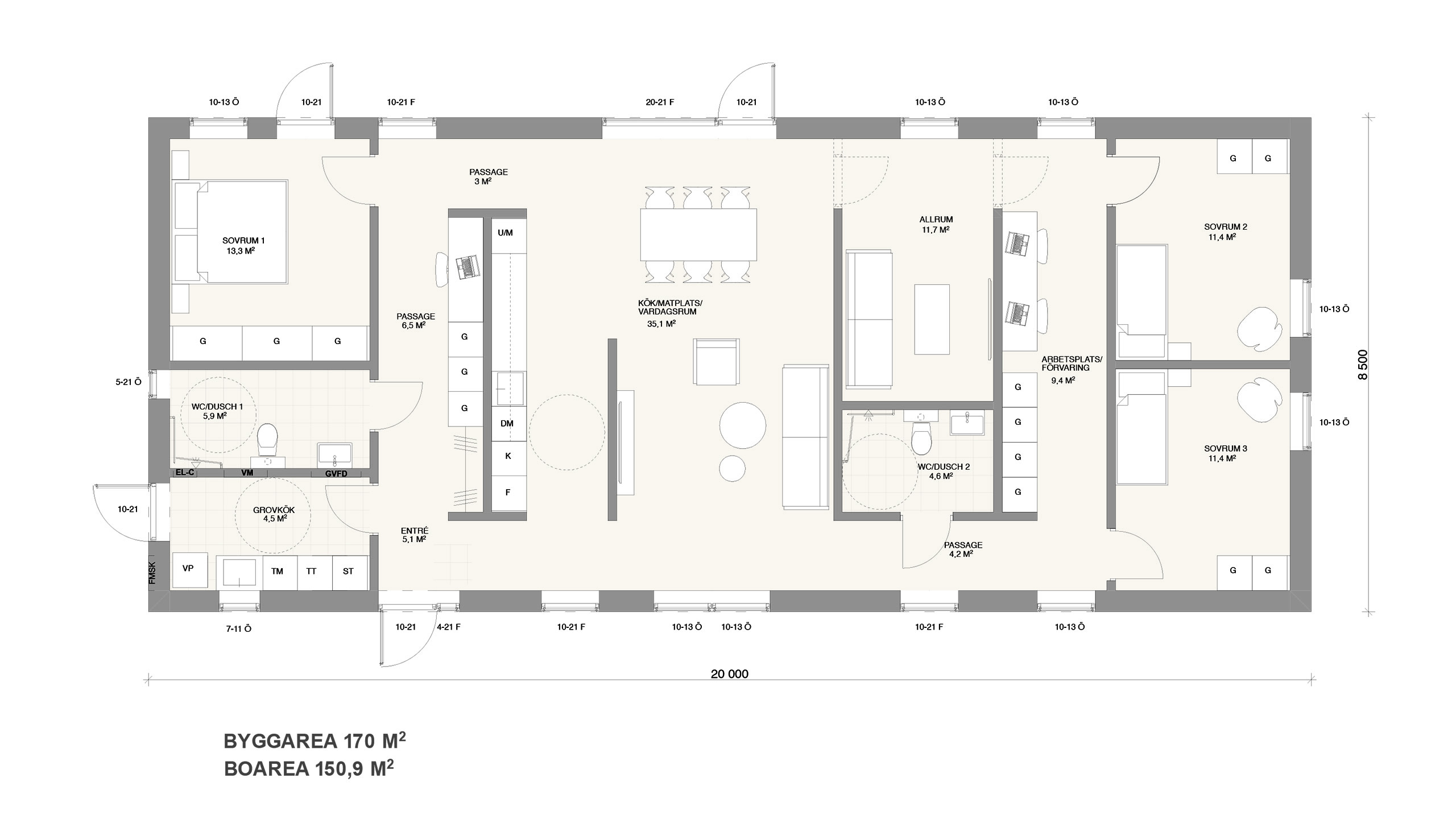 Byggarea: 170 m2